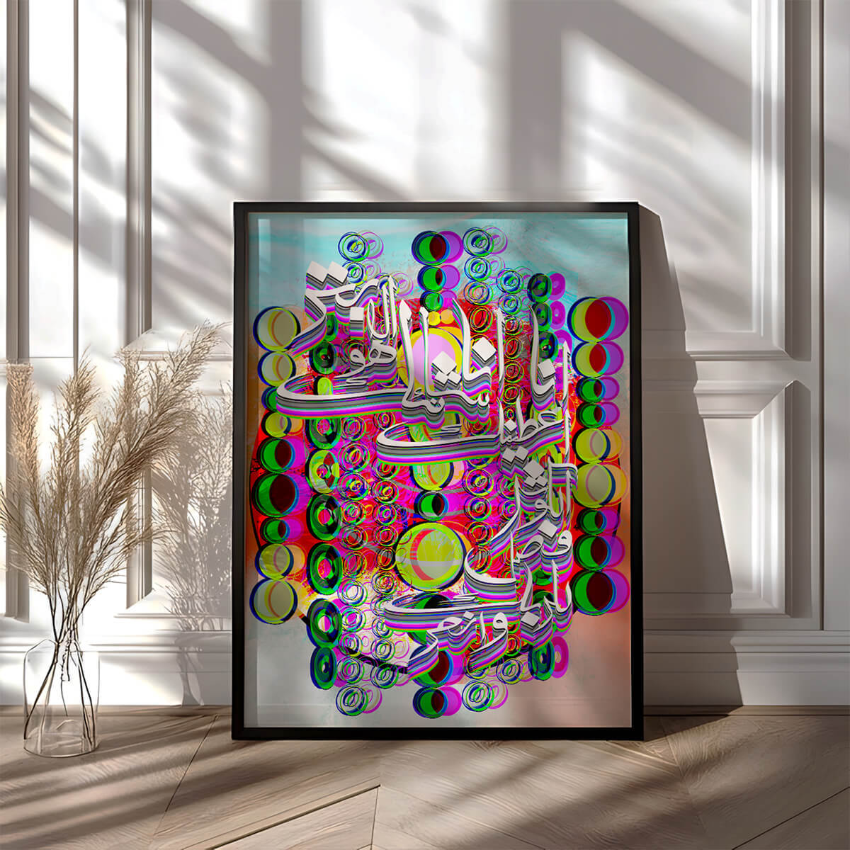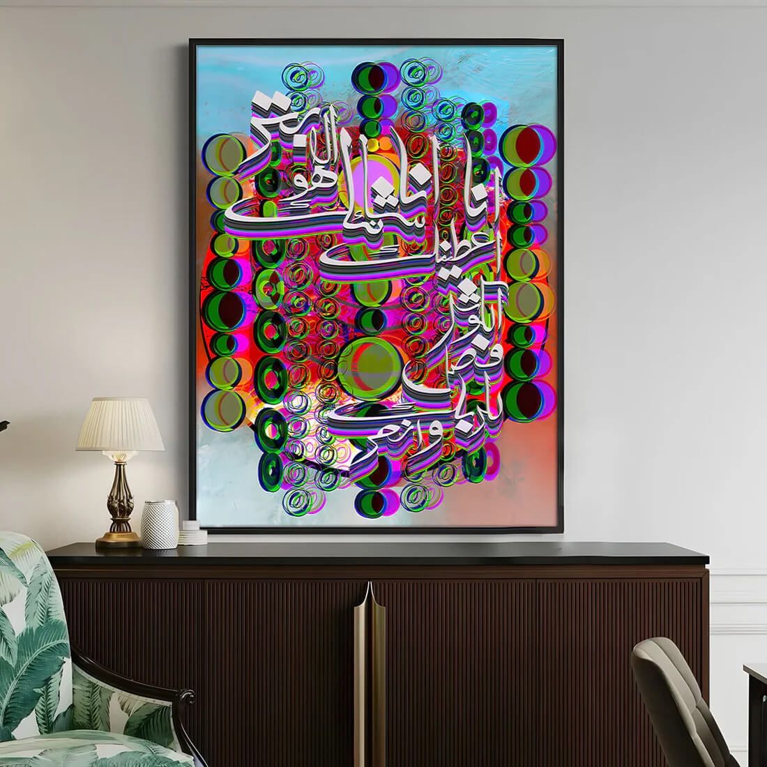 This piece is inspired by Surah Al-Kawthar, the shortest chapter in the Qur’an, yet overflowing with meaning. Al-Kawthar, the river of abundance in Paradise, represents spiritual and divine blessings beyond measure. Soft, flowing forms and radiant highlights suggest a celestial stream, ever-pouring and ever-pure. A tribute to the mercy that never runs dry.
