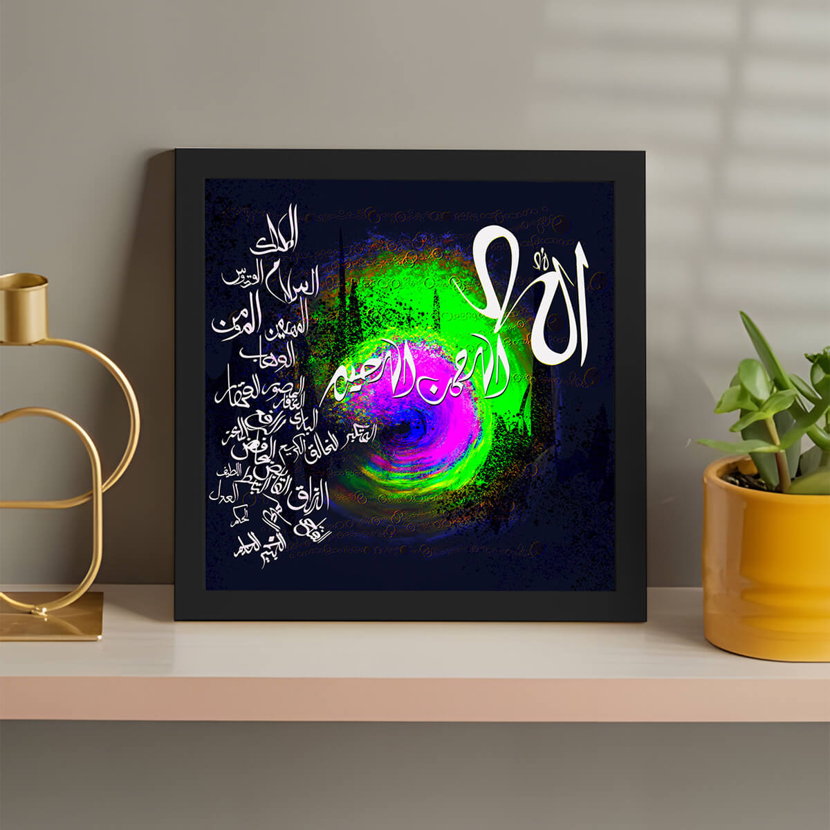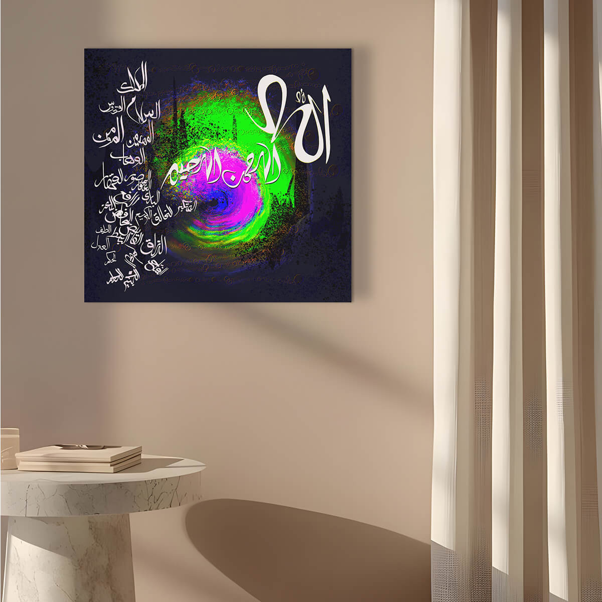 Visually expressed through interwoven patterns and luminous layers, this work reflects the harmony and majesty of Allah's attributes.